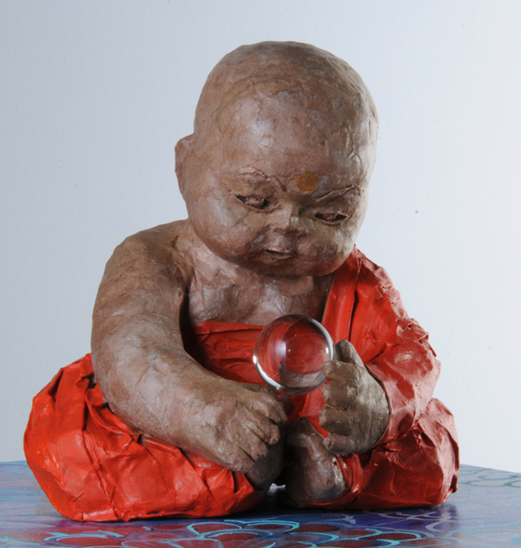 Niño monje sostiene su universo